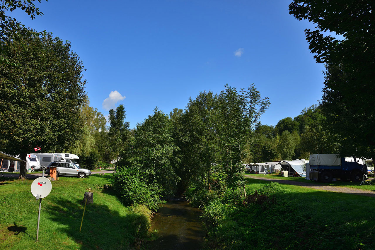 Der kleine Leukbach, der in seinem natürlichen Bachbett den Campingplatz durchfließt, verleiht ihm seinen einzigartigen Charakter. Lauschen Sie der Ruhe und dem Wassergeplätscher zum Träumen und Entspannen.
